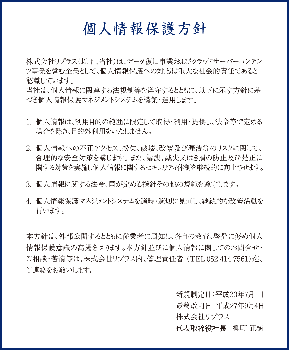 今後もプライパシー、個人情報の取扱いを遵守し、サービスの提供に努めてまいります